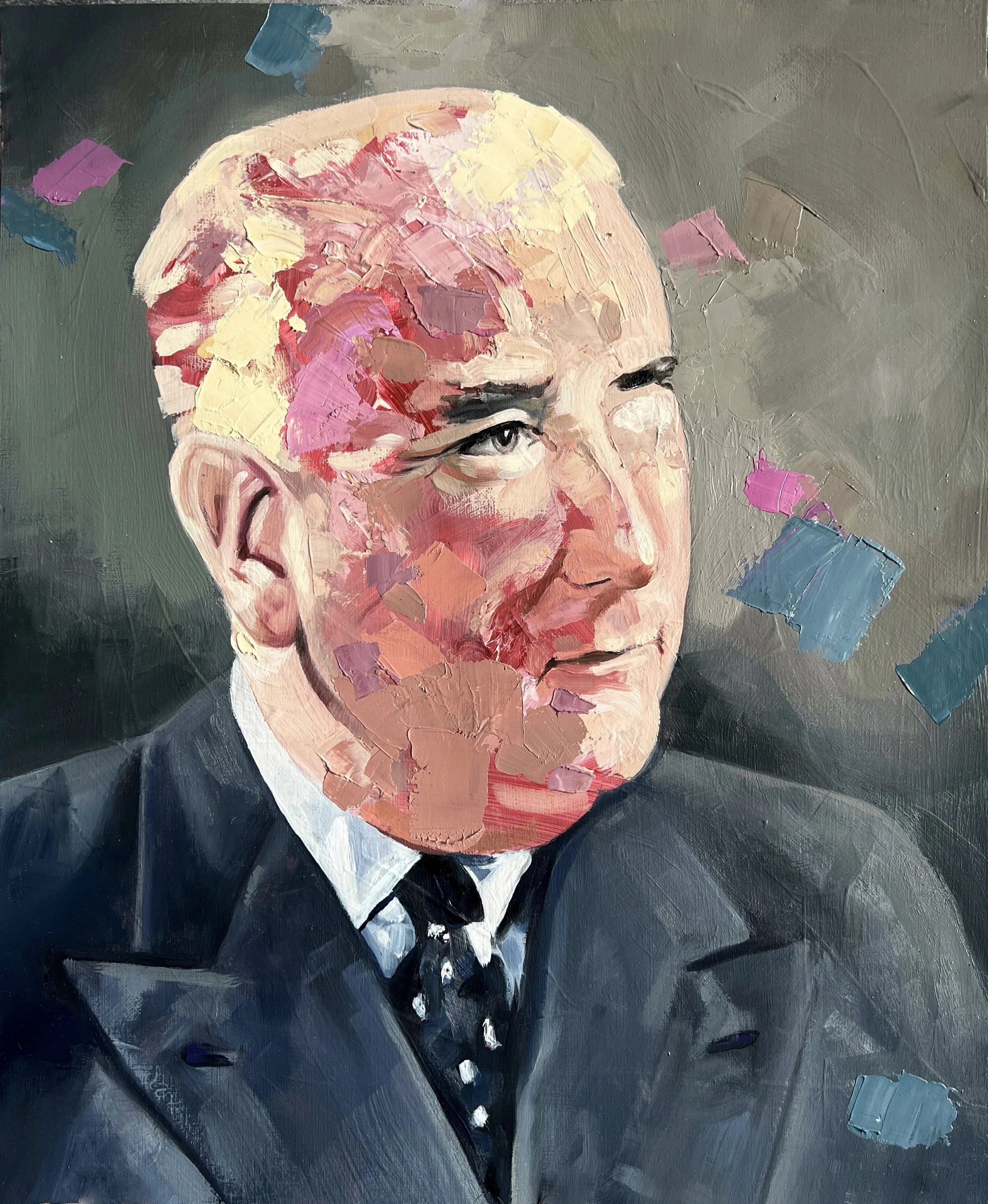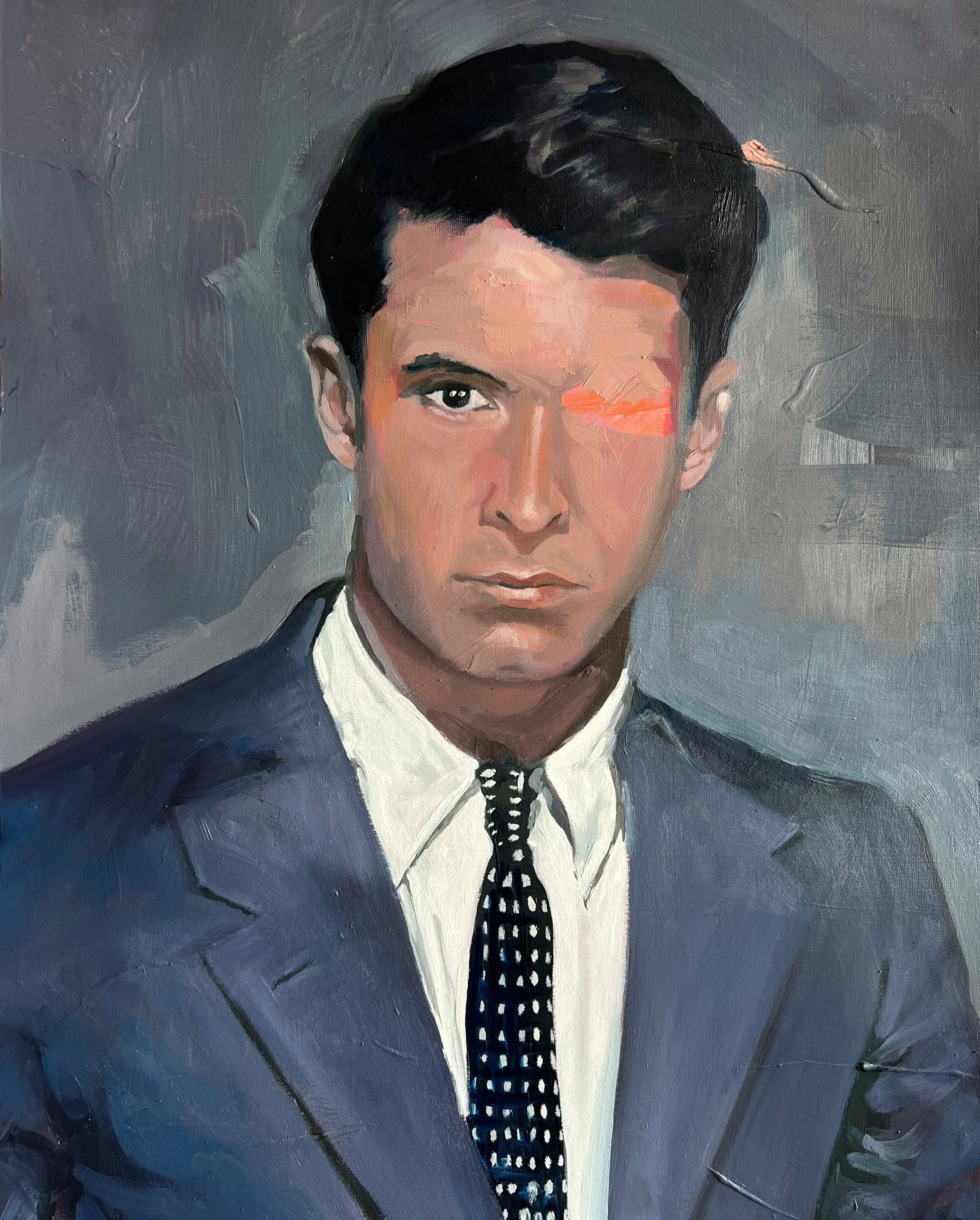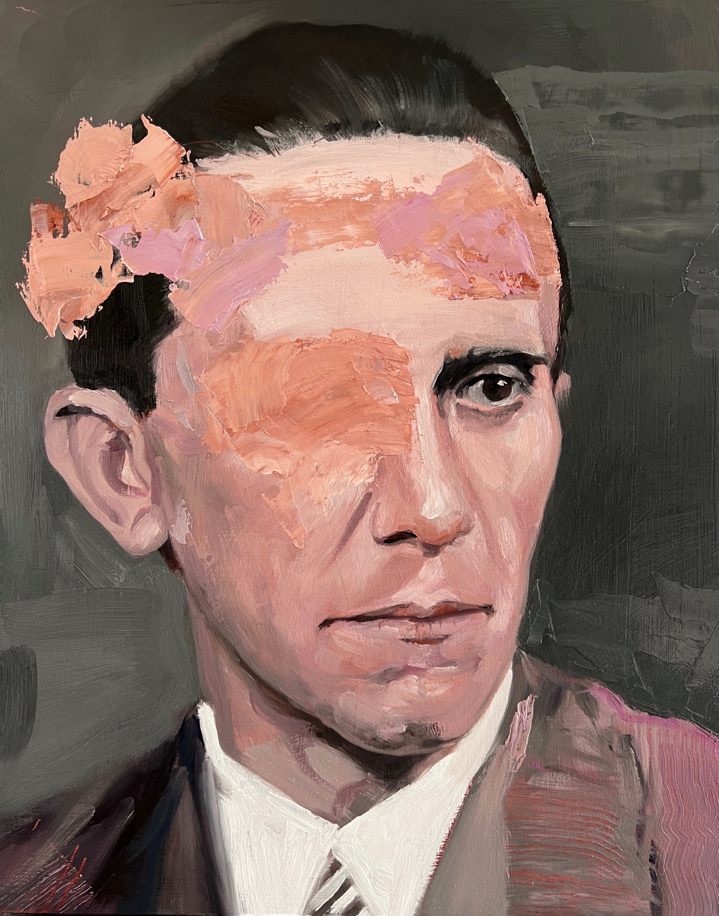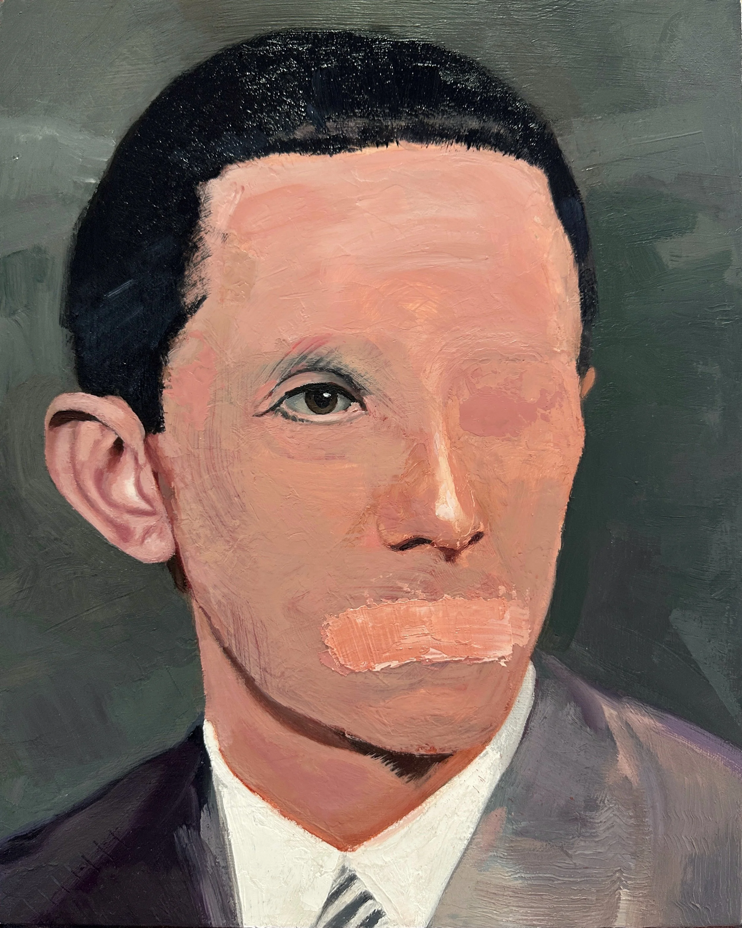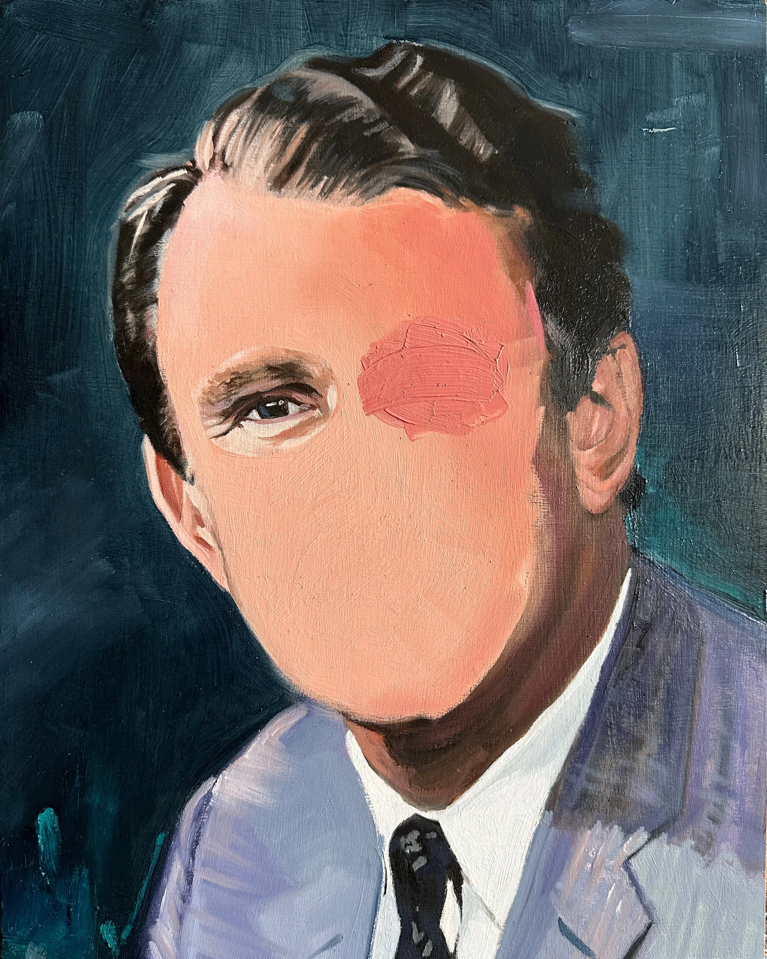 Head Study (The Industrialist), 2022. Oil on cradled Wood Panel, 28.5x35.5x3.7cm