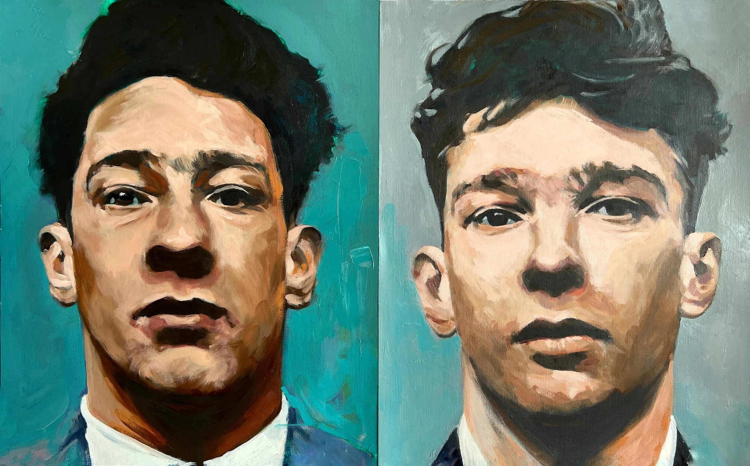 Study for a double Portrait (Kray Twins), 2022. Oil on Canson Oil Paper, 40x66cm.