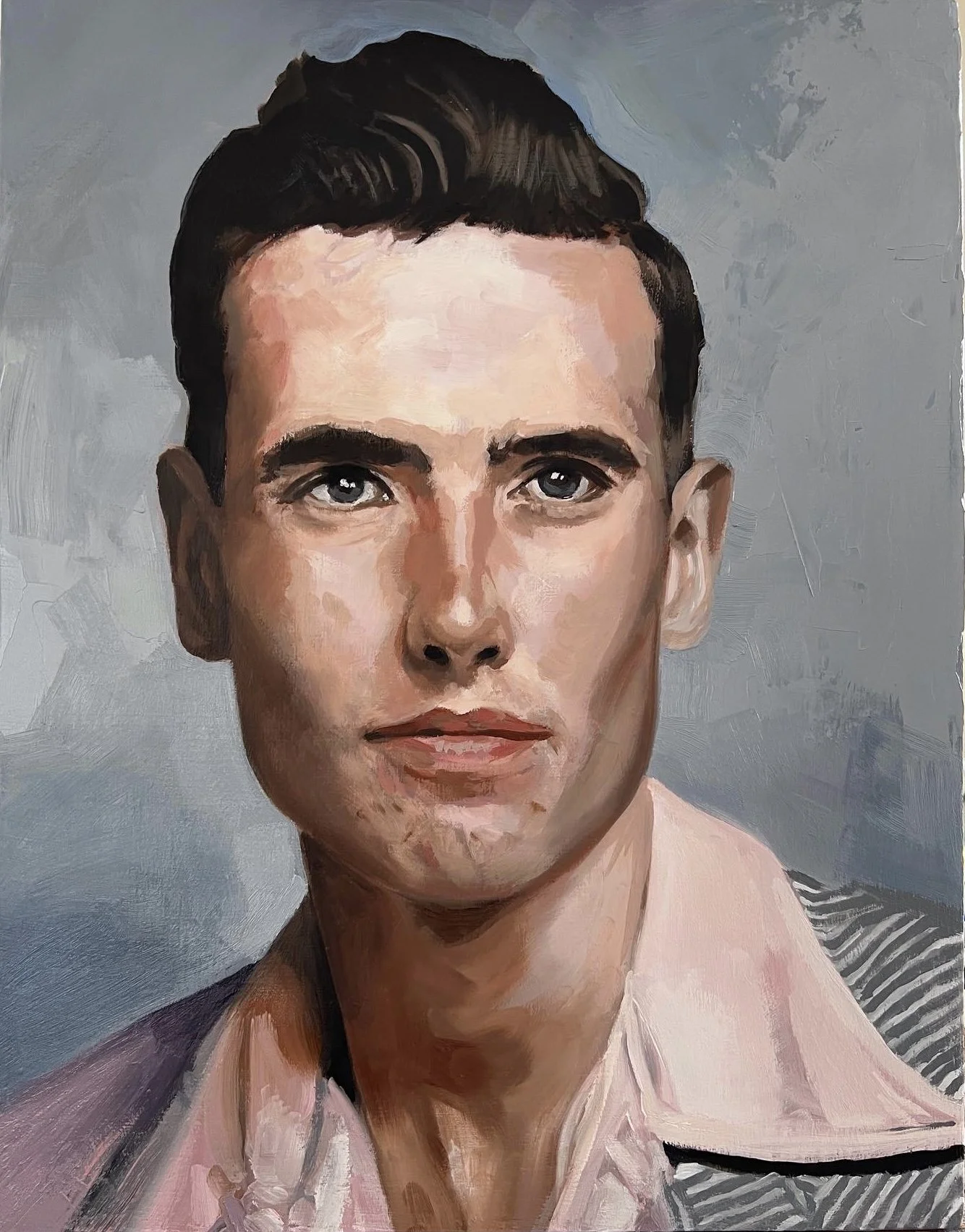 Study of a young Man, 2023. Oil and Polymer on cradled wood Panel, 40x50x3.7cm